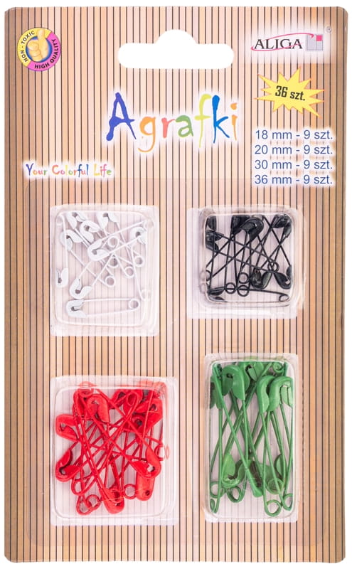 Agrafki kolorowe mix 36 sztuk, Aliga