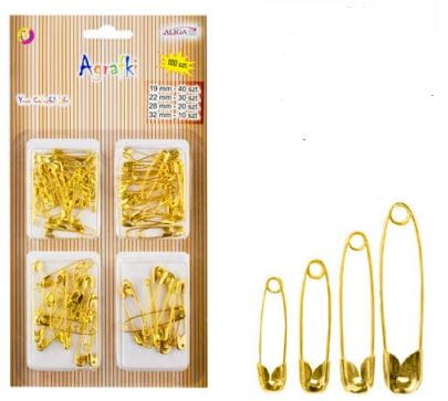 Agrafki złote mix wielkości 100 sztuk, Aliga