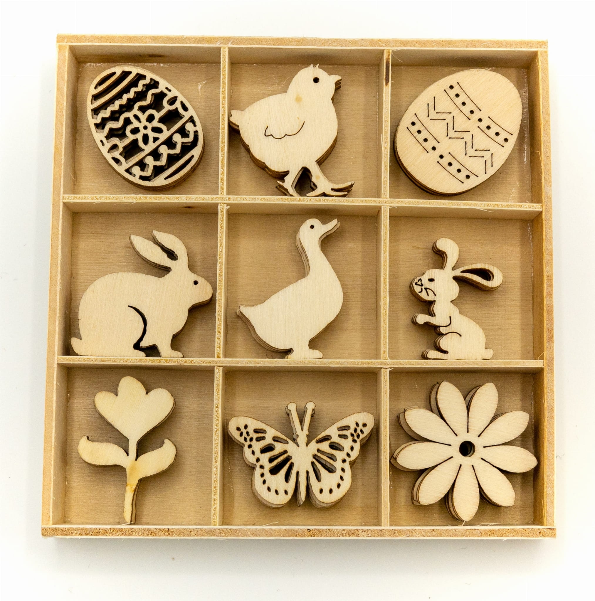 Aplikacje Drewniane Drewnokształty Wielkanoc 9 wzorów x 5 sztuk, Aliga