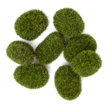 Dekoracyjne kamyki pokryte sztucznym mchem, który do złudzenia przypomina naturalny to niebanalny dodatek do projektów typu home decor i kompozycji florystycznych - stroików, wianków, jako wypełnienie donicy czy kosza.