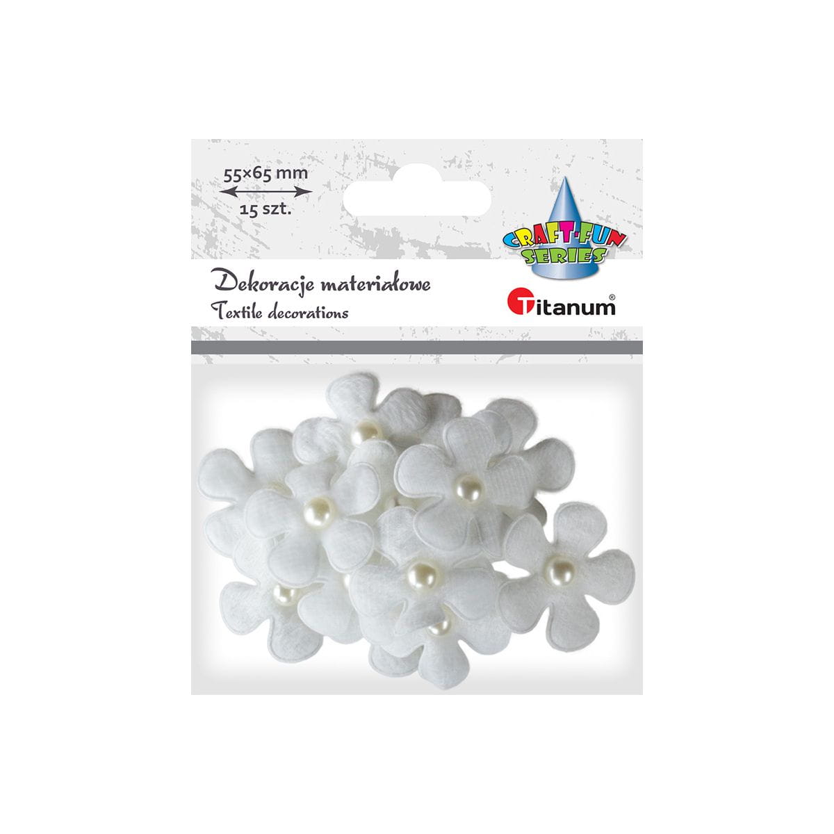 Aplikacje materiałowe Białe kwiatki z perełką op. 15 sztuk, Craft Fun