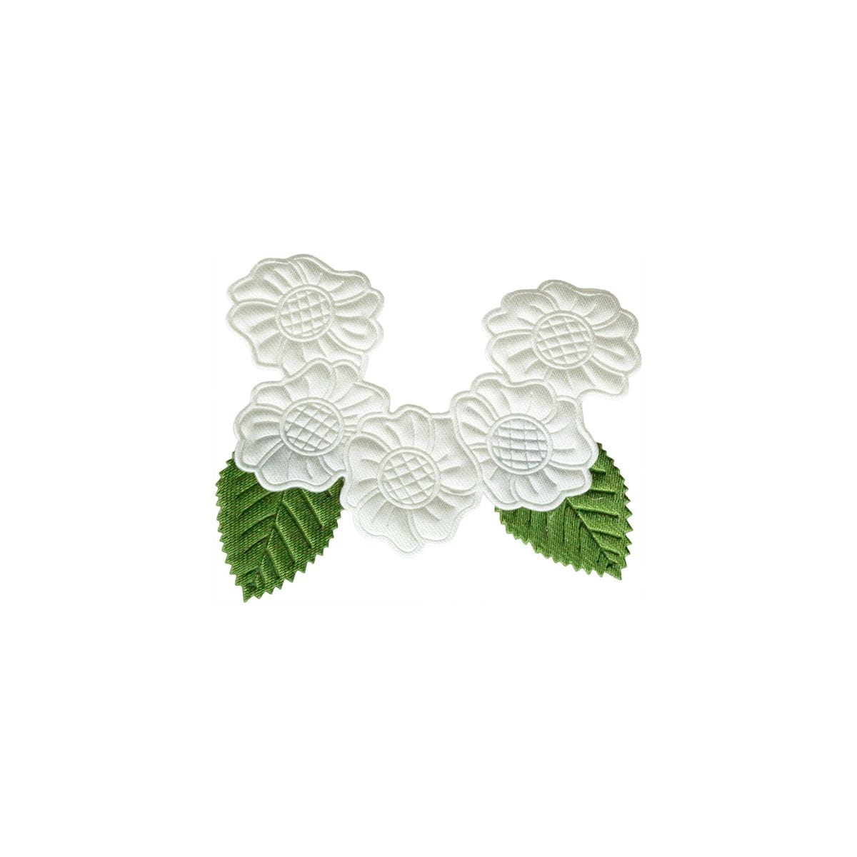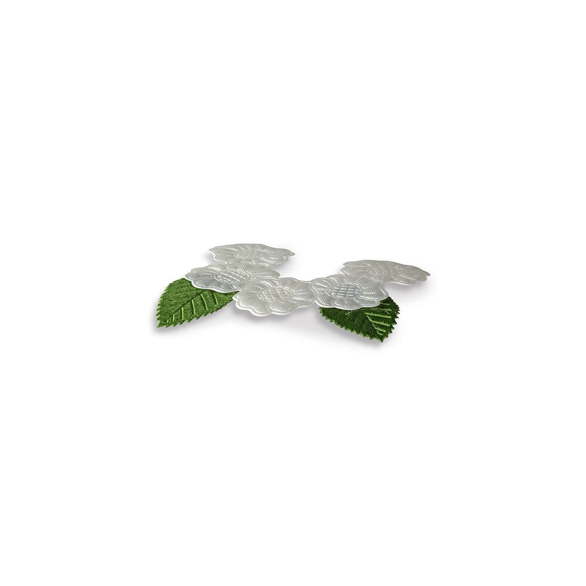 Aplikacje materiałowe kwiaty gardenii 72x47 mm, biało-zielone. Opakowanie 6 szt.