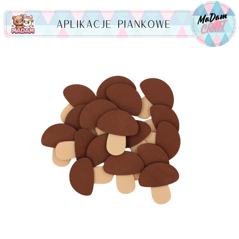 Aplikacje piankowe grzyby 4 cm 18 sztuk Jesień, MaDam Creative
