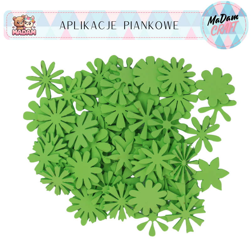 Aplikacje piankowe kwiatki zielone 2,5 cm 60 sztuk, MaDam Creative