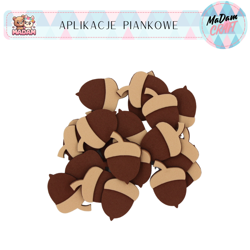 Aplikacje piankowe żołędzie 4 cm 20 sztuk Jesień, MaDam Creative