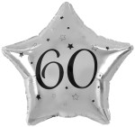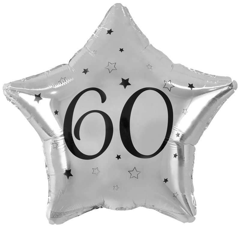 Balon foliowy liczba 60, gwiazda srebrna, 19 cali
