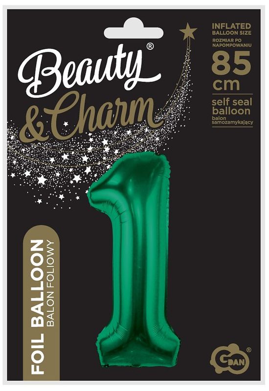 Balon foliowy B&C, cyfra 1, zieleń butelkowa, 85 cm, GoDan