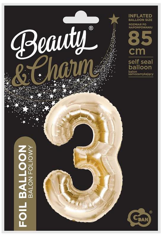 Balon foliowy B&C, cyfra 3, szampańska, 85 cm, GoDan