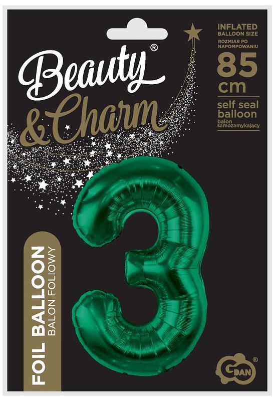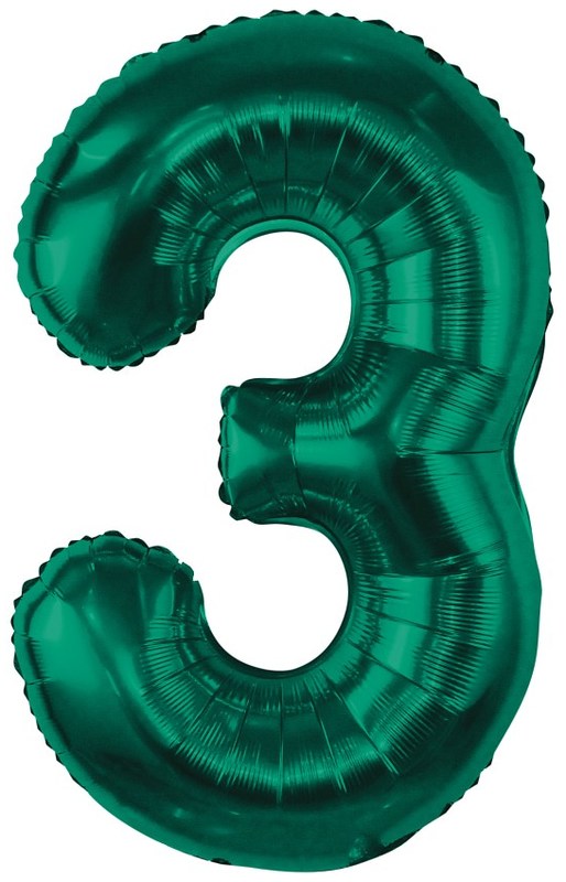 Balon foliowy B&C, cyfra 3, zieleń butelkowa, 85 cm, GoDan