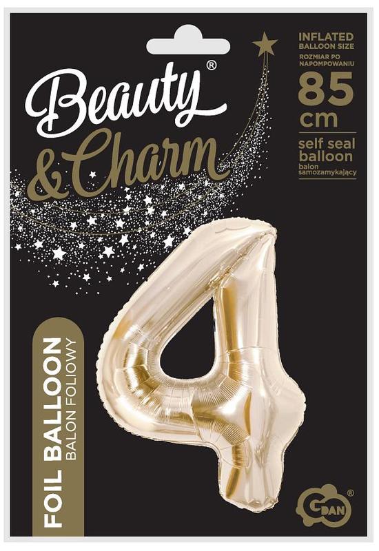 Balon foliowy B&C, cyfra 4, szampańska, 85 cm, GoDan