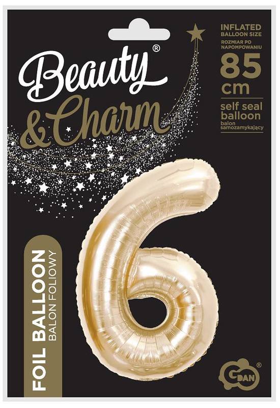 Balon foliowy B&C, cyfra 6, szampańska, 85 cm, GoDan