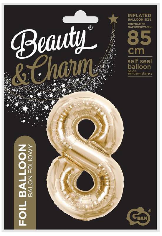 Balon foliowy B&C, cyfra 8, szampańska, 85 cm, GoDan