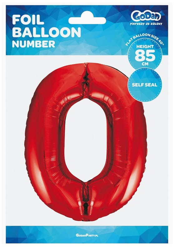 Balon foliowy Cyfra 0 czerwona 85 cm, GoDan
