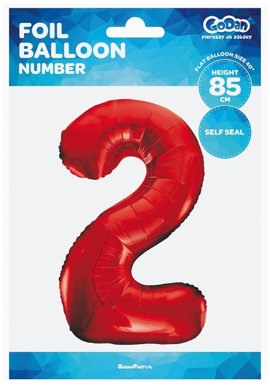 Balon foliowy Cyfra 2 czerwona 85 cm, GoDan