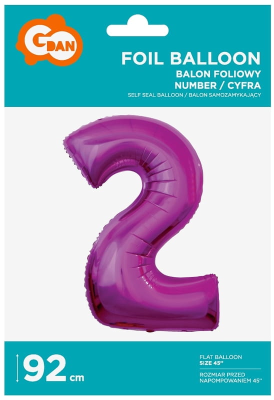Balon foliowy Cyfra 2 różowa 92 cm, Godan