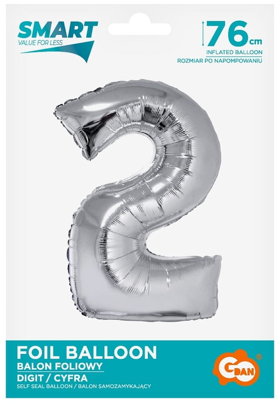 Balon foliowy Cyfra 2 srebrna 76 cm, GoDan