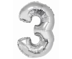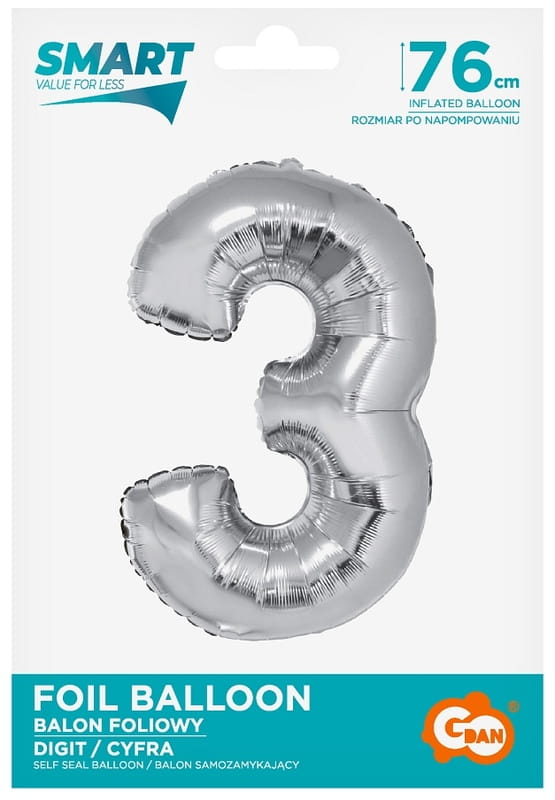 Balon foliowy Cyfra 3 srebrna 76 cm, GoDan
