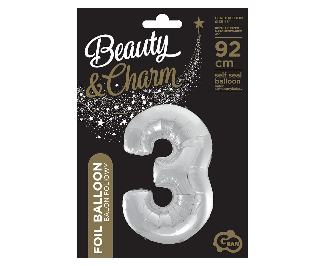 Balon foliowy Cyfra 3 srebrna 92 cm, GoDan
