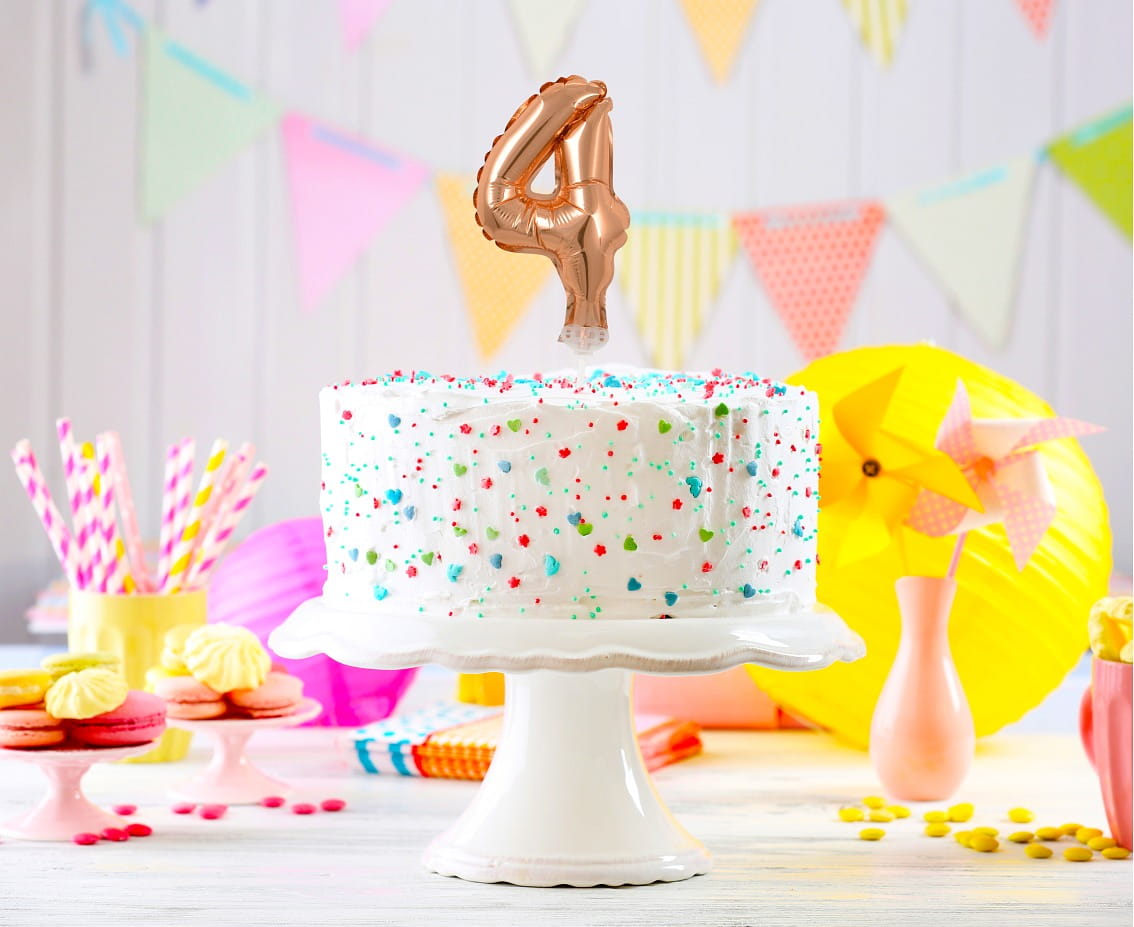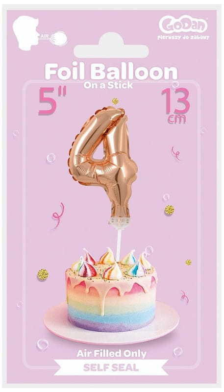 Balon foliowy Cyfra 4 na patyczku różowo-złota 13 cm, GoDan