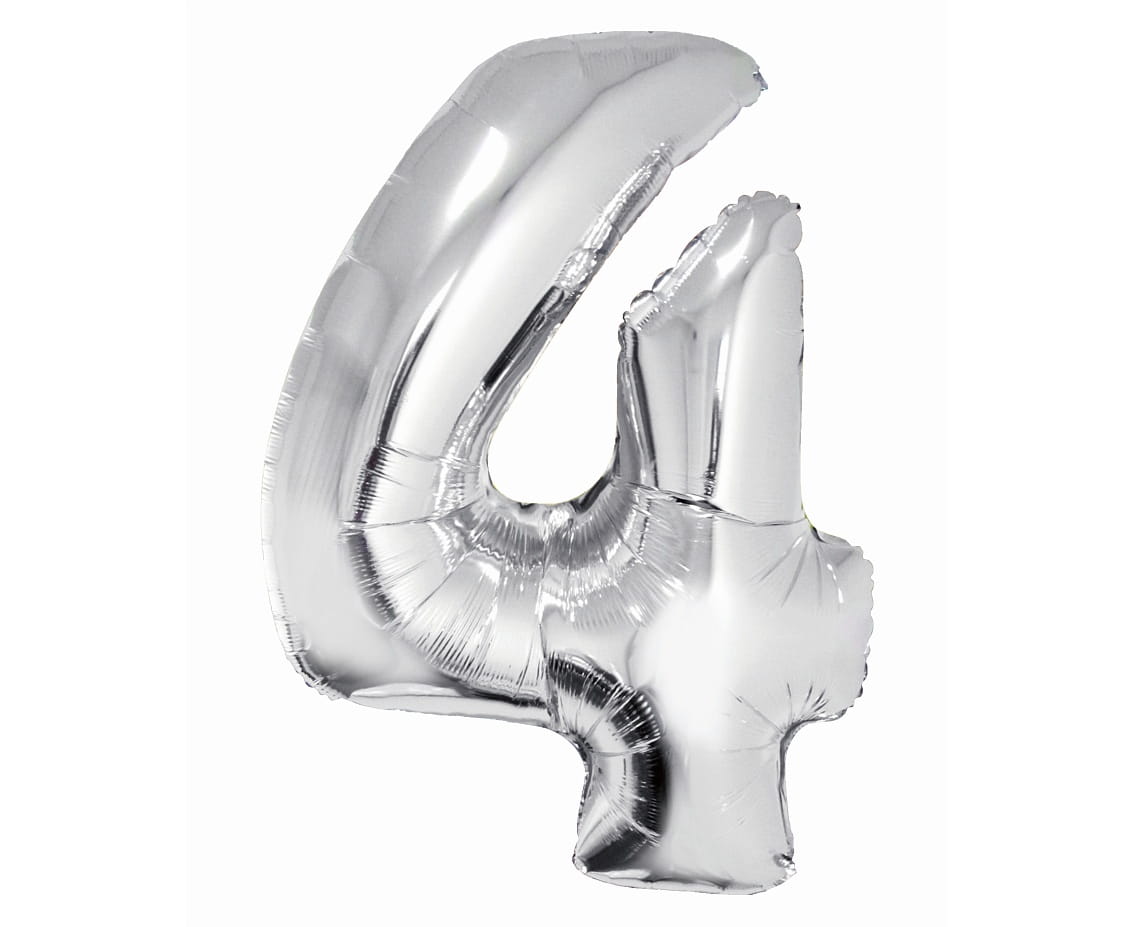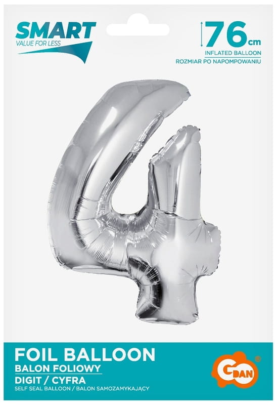 Balon foliowy Cyfra 4 srebrna 76 cm, GoDan