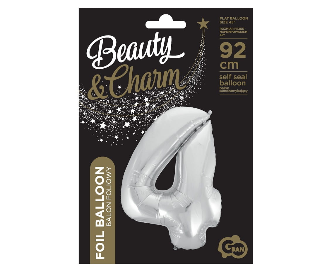 Balon foliowy Cyfra 4 srebrna 92 cm, GoDan