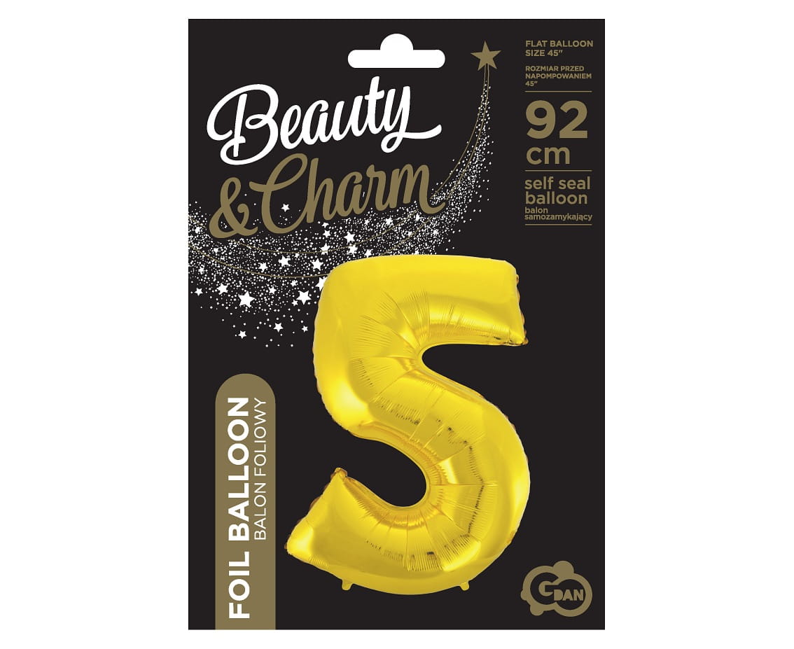 Balon foliowy Cyfra 5 złota 92 cm, GoDan