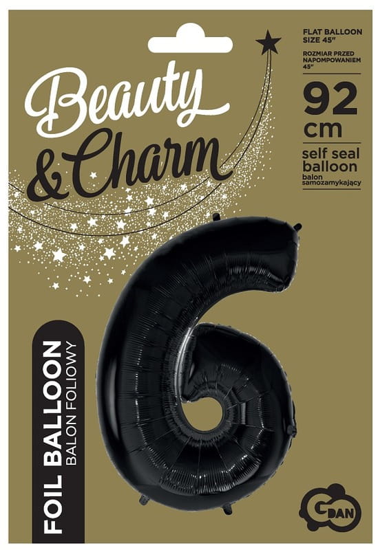 Balon foliowy Cyfra 6 czarna 92 cm, GoDan