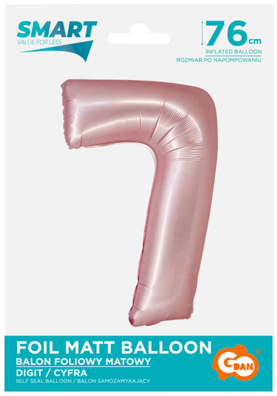 Balon foliowy Cyfra 7 różowa jasna matowa 76 cm, GoDan