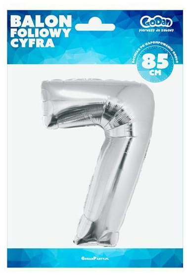 Balon foliowy Cyfra 7 srebrna 85 cm, GoDan