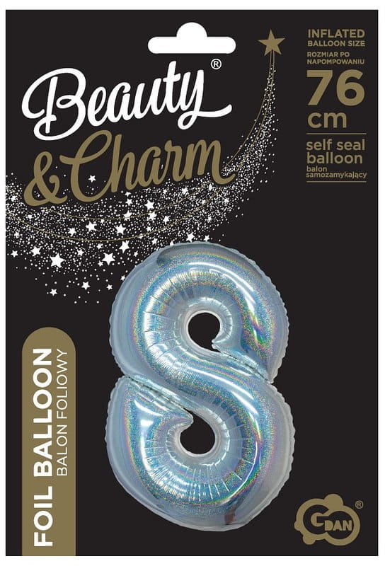 Balon foliowy Cyfra 8 holograficzny srebrny 76 cm, GoDan