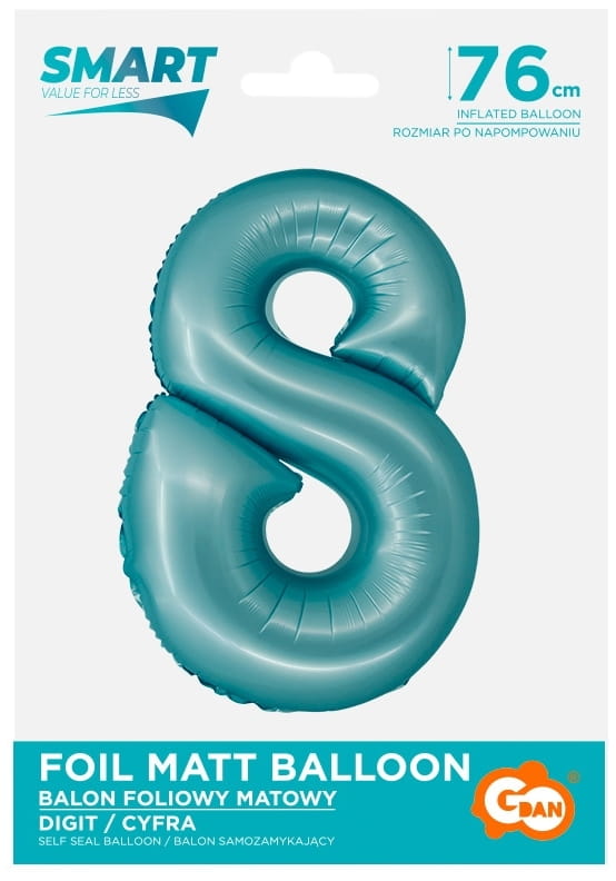 Balon foliowy Cyfra 8 niebieska jasna matowa 76 cm, GoDan