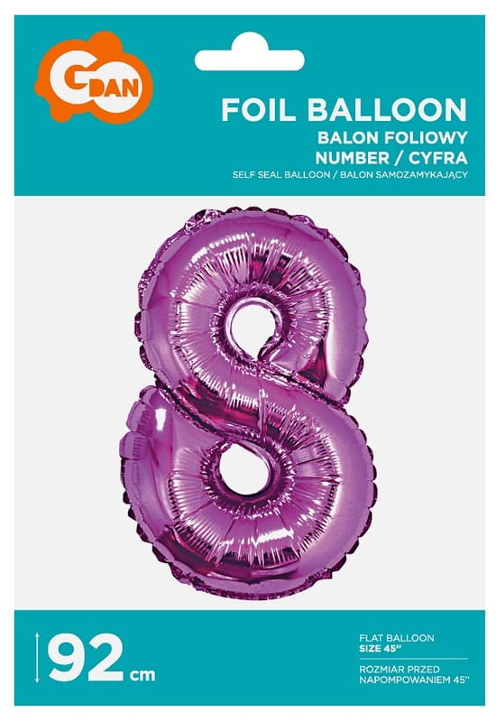 Balon foliowy Cyfra 8 różowa 92 cm, Godan