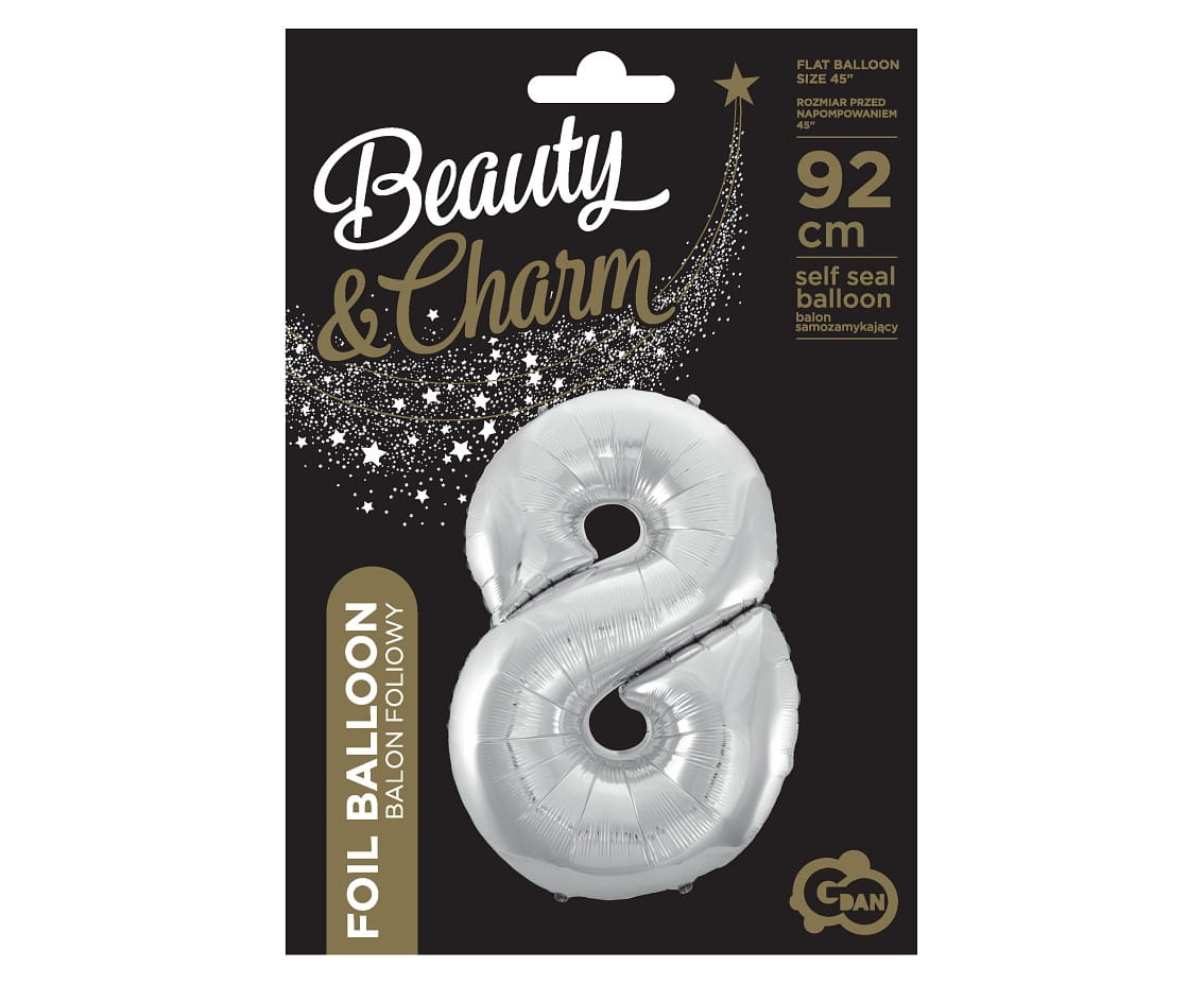 Balon foliowy Cyfra 8 srebrna 92 cm, GoDan