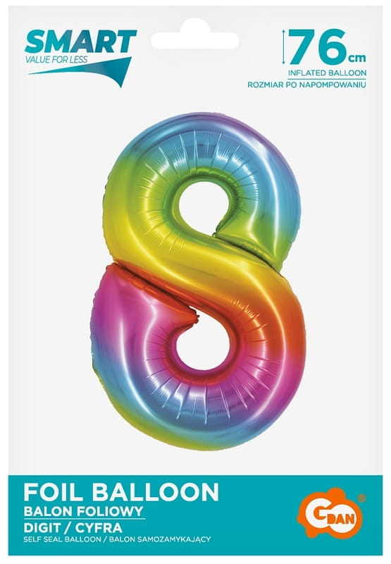 Balon foliowy Cyfra 8 tęczowa 76 cm, GoDan