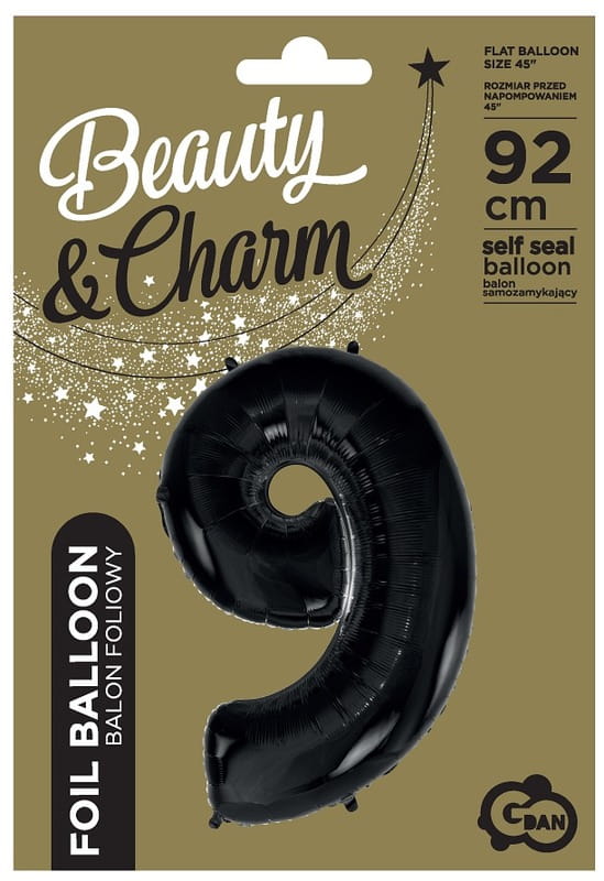 Balon foliowy Cyfra 9 czarna 92 cm, GoDan