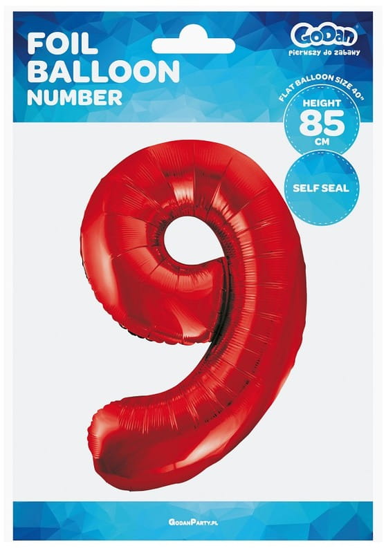 Balon foliowy Cyfra 9 czerwona 85 cm, GoDan