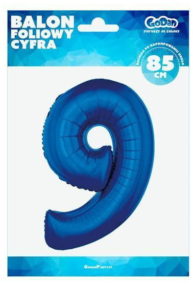Balon foliowy Cyfra 9 niebieska 85 cm, Godan