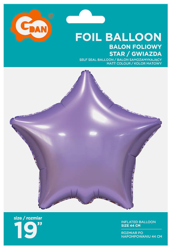 Balon foliowy Gwiazda matowa liliowa 44 cm, GoDan