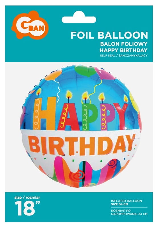 Balon foliowy Happy Birthday świeczki 34 cm, GoDan
