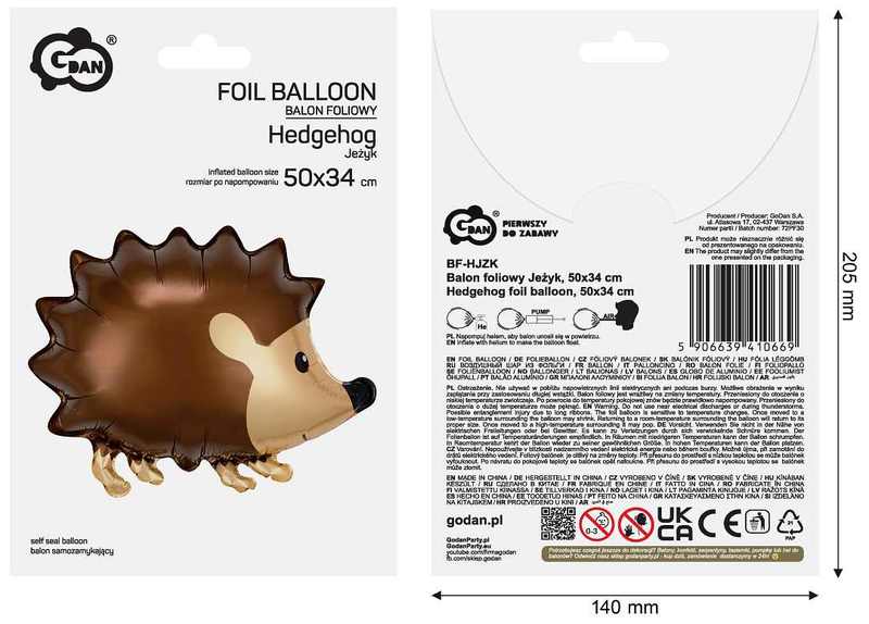 Balon foliowy Jeżyk, 50x34cm, GoDan