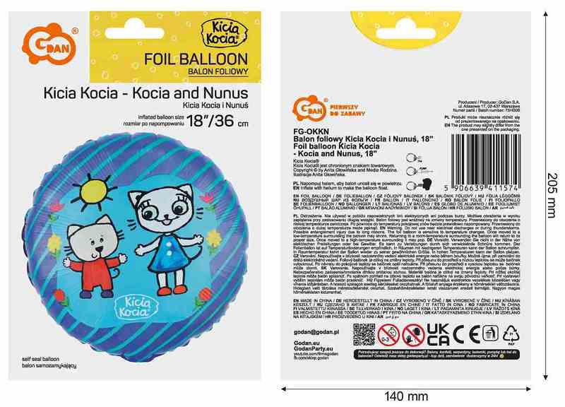 Balon foliowy "Kicia Kocia i Nunuś", 18", GoDan