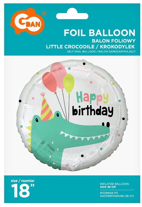 Balon foliowy Krokodylek (Happy Birthday), 18", GoDan
