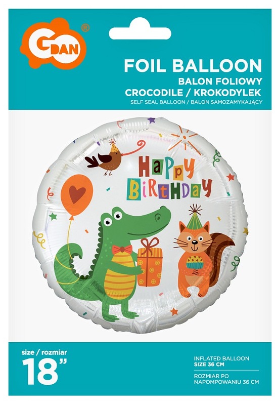 Balon foliowy Krokodylek z prezentem (Happy Birthday), 18", GoDan