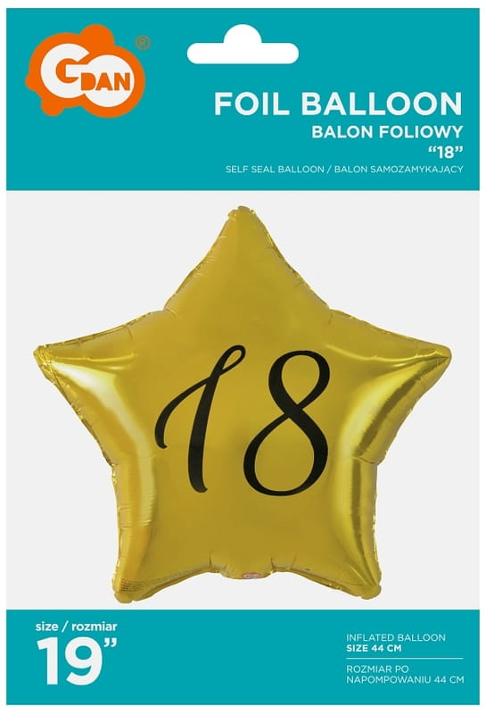 Balon foliowy Liczba 18 gwiazda złota 44 cm Godan