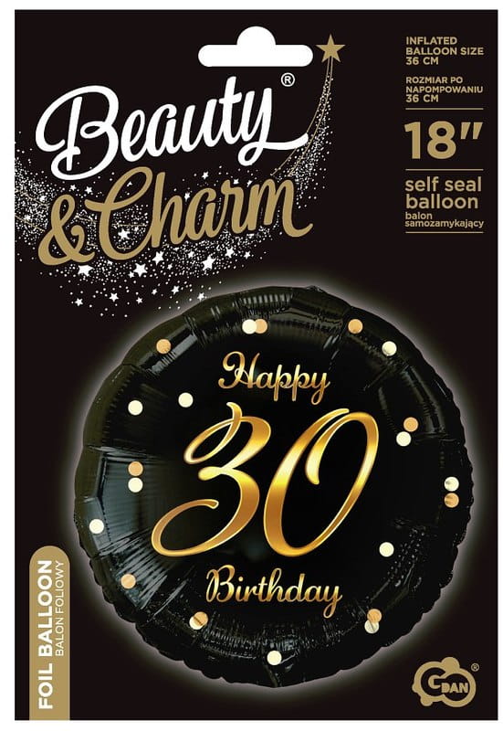 Balon foliowy Liczba 30 Happy 30 Birthday czarny 36 cm, Godan