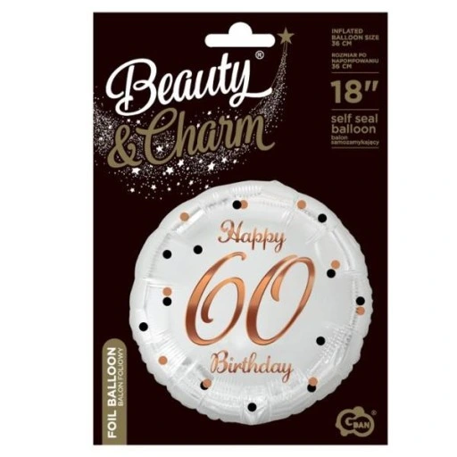 Balon foliowy Liczba 60 Happy 60 Birthday biały 36 cm, Godan