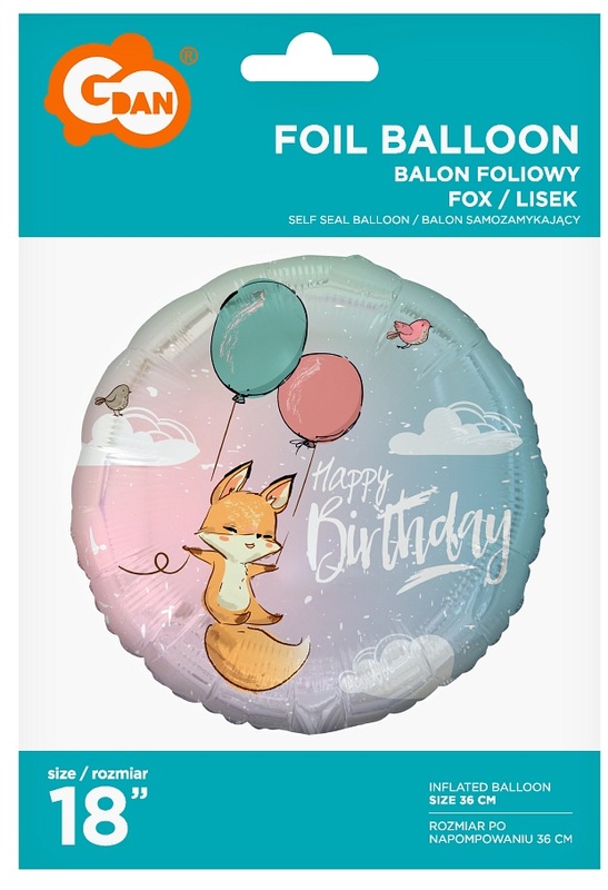 Balon foliowy Lisek (Happy Birthday), 18", GoDan