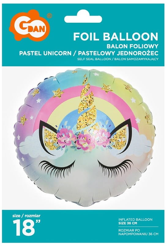 Balon foliowy Pastelowy Jednorożec 36 cm, GoDan