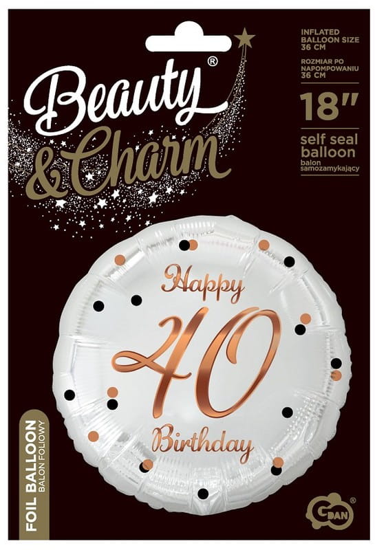Balon foliowy cyfra 40 Happy Birthday biały 36 cm, Godan