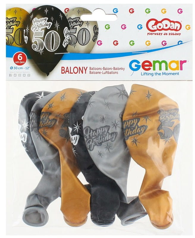 Balony Happy Birthday 50 metaliczne 6 sztuk 30 cm, GoDan